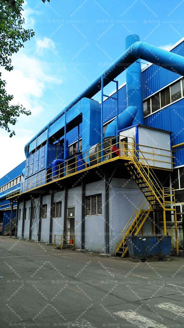 預(yù)處理生產(chǎn)線五臺機器共用一套廢氣處理系統(tǒng),采用兩級過濾+活性炭吸附+催化燃燒脫附工藝,合計總處置風(fēng)量為6萬m3/h;