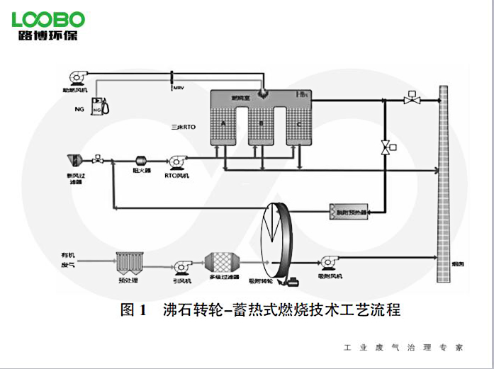 廢氣流經(jīng)蓄熱室A升溫后進(jìn)入氧化室氧化,凈化后的高溫氣體離開氧化室,進(jìn)入蓄熱室B,釋放熱量,降溫排出,而蓄熱室B吸收大量熱量后升溫,同時清掃蓄熱室C。循環(huán)完成后,進(jìn)氣與出氣閥門進(jìn)行一次切換,進(jìn)入下一個循環(huán),廢氣由蓄熱室B進(jìn)入,蓄熱室C排出,清掃蓄熱室A。如此交替。由于廢氣已在蓄熱室內(nèi)預(yù)熱,燃料耗量大為減少,運行成本大大降低。