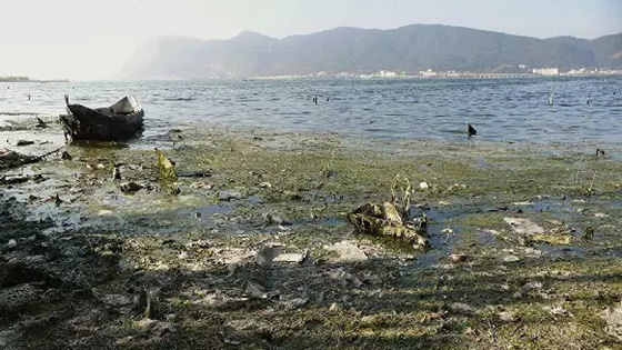 富營(yíng)養(yǎng)化是指因水體中N、P等植物必需的礦質(zhì)元素含量過(guò)多而使水質(zhì)惡化的現(xiàn)象。水體中含有適量的N、P等礦質(zhì)元素,這是藻類(lèi)植物生長(zhǎng)發(fā)育所必需的。但是,如果這些礦質(zhì)元素大量地進(jìn)入水體,就會(huì)使藻類(lèi)植物和其他浮游生物大量繁殖。這些生物死亡以后,先被需氧微生物分解,使水體中溶解氧的含量明顯減少。接著,生物遺體又會(huì)被厭氧微生物分解,產(chǎn)生出硫化氫、甲烷等有毒物質(zhì),致使魚(yú)類(lèi)和其他水生生物大量死亡。發(fā)生富營(yíng)養(yǎng)化的湖泊、海灣等流動(dòng)緩慢的水體,因浮游生物種類(lèi)的不同而呈現(xiàn)出藍(lán)、紅、褐等顏色。富營(yíng)養(yǎng)化發(fā)生在池塘和湖泊中叫做“水華”,發(fā)生在海水中叫做“赤潮”。工業(yè)廢水、生活污水和農(nóng)田排出的水中含有很多N、P等植物必需的礦質(zhì)元素,這些植物必需的礦質(zhì)元素大量地排到池塘和湖泊中,會(huì)使池塘和湖泊出現(xiàn)富營(yíng)養(yǎng)化現(xiàn)象。池塘和湖泊的富營(yíng)養(yǎng)化不僅影響水產(chǎn)養(yǎng)殖業(yè),而且會(huì)使水中含有亞硝酸鹽等致癌物質(zhì),嚴(yán)重地影響人畜的安全飲水。