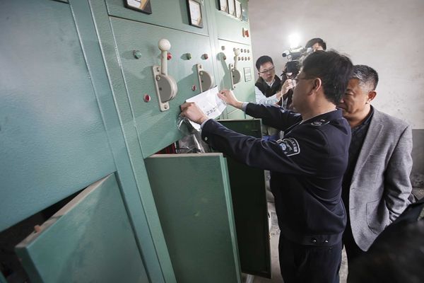 ??? 貼完封條,環(huán)保部門決定對企業(yè)拉閘斷電?!皩`法企業(yè)來說,斷了電,不關停也得關停?!惫╇姽菊业狡髽I(yè)的配電室,將車間對應的電閘拉下,并由環(huán)保執(zhí)法人員貼上封條。
