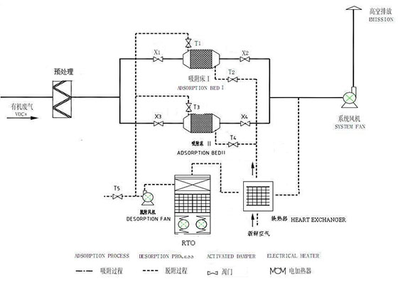 2、如果是成分特別復(fù)雜的工業(yè)有機(jī)廢氣,處理的方式為:“吸附+脫附+催化燃燒”工藝。經(jīng)過催化燃燒后的有機(jī)廢氣轉(zhuǎn)化為二氧化碳和水直接排放,工藝簡單而且處理效果好,催化燃燒后的預(yù)熱可以再利用。