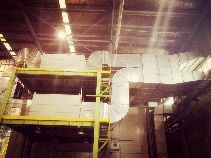 工業(yè)廢氣利用排風(fēng)設(shè)備輸入到凈化設(shè)備后,凈化設(shè)備運(yùn)用高能UV紫外線光束及臭氧對工業(yè)廢氣進(jìn)行協(xié)同分解氧化反應(yīng),使工業(yè)廢氣降解轉(zhuǎn)化成低分子化合物、水和二氧化碳,再通過排風(fēng)管道排出室外。