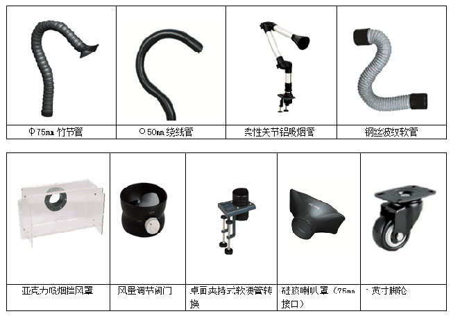 五、LB-QF激光煙霧凈化器備選配件及示意圖