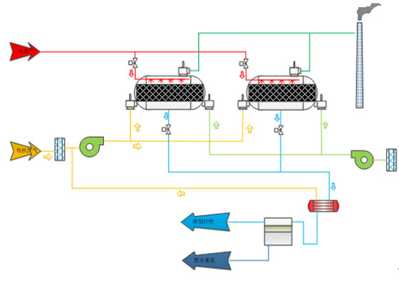 如果采用吸附回收方式,則通過吸附后的有機廢氣可以達標排放,同時經(jīng)過冷凝回收的高價值的有機溶劑可以循環(huán)利用與生產線,具有很大的經(jīng)濟效益。